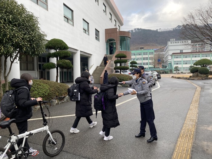 학생들은 “사이버상 힘든일이 있어도 주변에 알리지 못했는데 경찰관이 직접 와서 설명해주니 용기 낼 수 있을 것 같고, 꼭 필요한 여성용품을 주셔서 감사하다.”라는 반응이다.