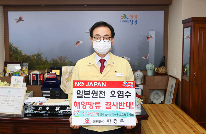 한정우 창녕군수는 22일 일본 정부의 후쿠시마 원전 오염수 해양 방류 결정을 규탄하고 철회를 촉구하는 릴레이 챌린지에 동참했다.