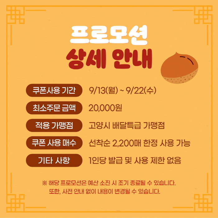 시는 9월 11일부터 9월 30일까지 4,000명을 대상으로 배달비 지원(3,000원 쿠폰) 이벤트와 9월 13일부터 9월 22일까지 2,200명에게 5,000원 쿠폰을 지원하는 추석 얼리버드 이벤트를 진행한다.