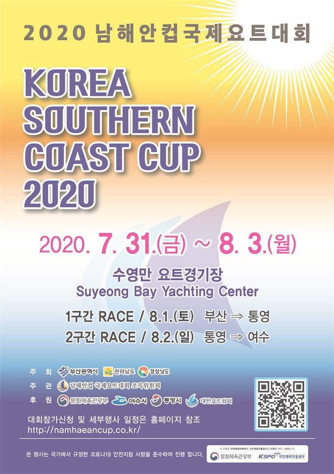 부산시(시장 권한대행 변성완)가 경남도, 전남도와 공동으로 ‘2020 남해안컵 국제요트대회’를 개최한다.