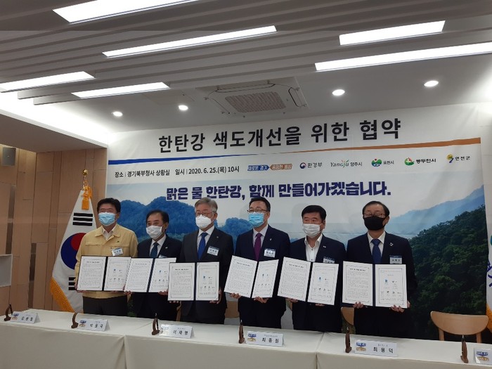 | ▲ 군은 한탄강의 맑은 물 살리기 사업도 추진 중에 있다. 사진은 협약식 후 기념촬영을 하고 있는 모습. (사진제공=연천군청) |