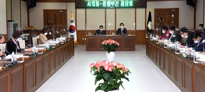 | ▲ 의정부시가 최근 '2020년 전국 지방자치단체 재정분석'에서 전국 1위 기관으로 선정됐다. 사진은 정담회 진행 모습. (사진제공=의정부시청) |