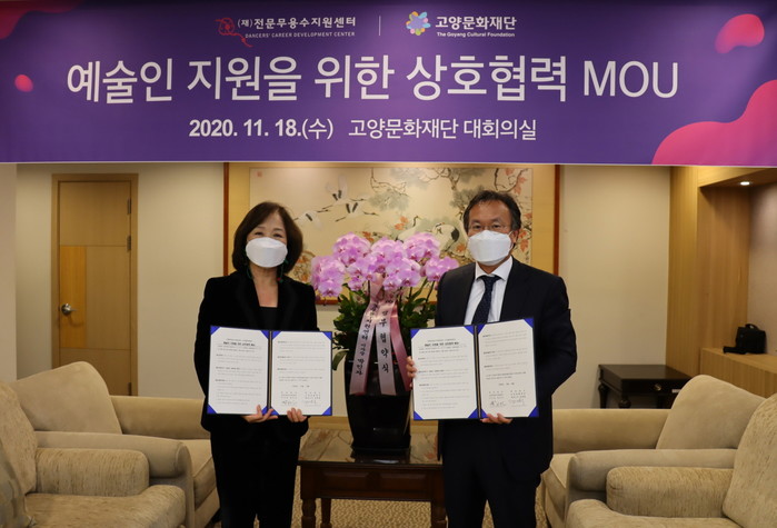 [고양=이기홍 기자] 고양문화재단과 전문무용수지원센터는 18일 오후 고양어울림누리 대회의실에서 예술인과 예술진흥을 위한 업무협약을 체결했다.