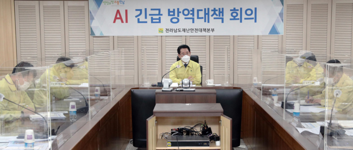 | ▲ 김영록 도지사가 AI긴급 방역대책회의를 진행하고 있다.(출처=전남도청) |