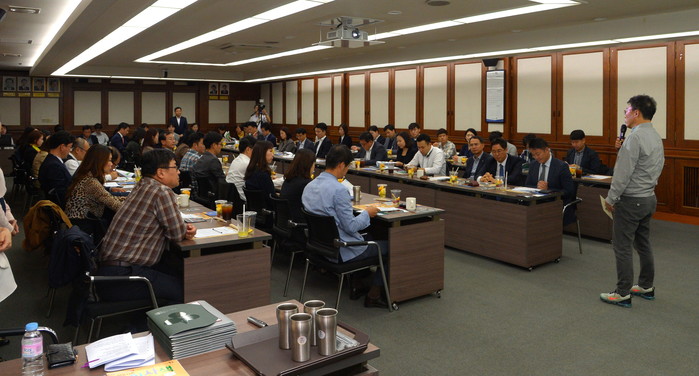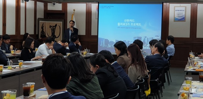 | ▲ 제2회 'beyond CSR' 포럼에서 신한카드 관계자가 을지로3가 프로젝트에 대해 설명하고 있다.(사진제공=중구청) |