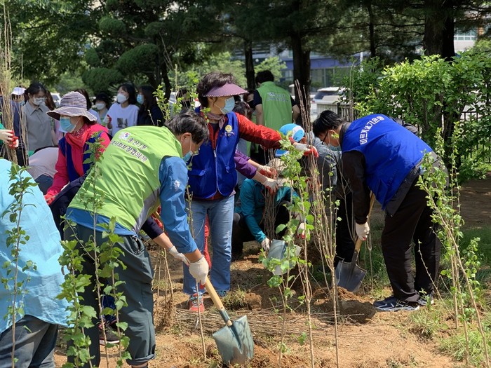 특히, 비가 오는 궂은 날씨에도 아랑곳하지 않고 한 마음 한 뜻으로 정성을 다해 식재했으며, 이미 조성된 수목과 어울리는 다양한 수종을 직접 선정해 푸르름에 다채로움을 더했다.