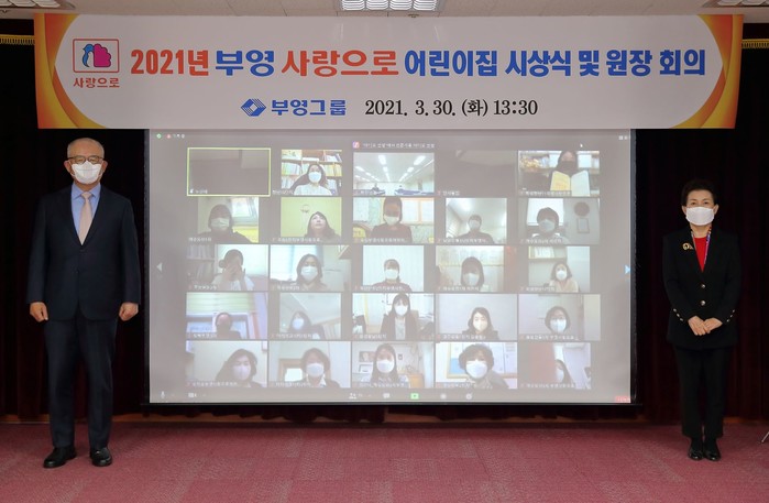 부영그룹은 지난 30일 온라인 비대면 방식으로 ‘2021년 어린이집 원장회의 및 시상식’을 열고 지난해 모범적으로 ‘안심 어린이집’을 실천한 ‘충북오창5단지 부영 사랑으로 어린이집(원장 정희욱)’을 대상으로 선정했다.