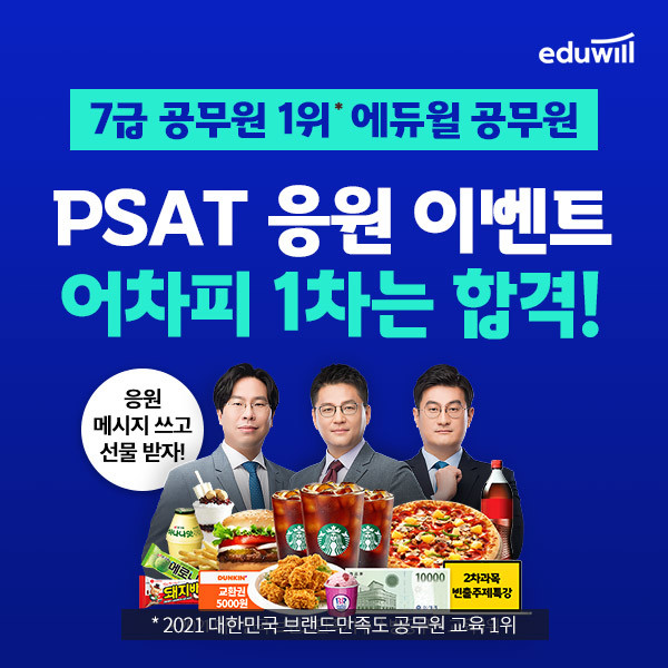 에듀윌 공무원 관계자는 "처음 도입된 7급공무원 PSAT 시험 전형에 응시하는 수험생들을 응원하는 이벤트"라고 밝혔다.