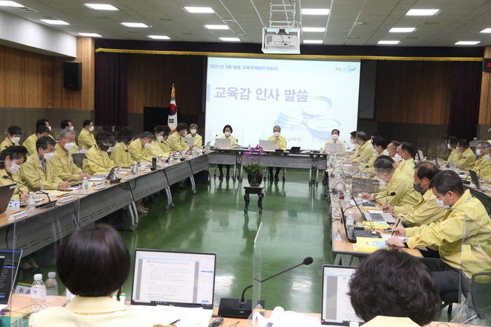 이번 회의의 핵심은 학교의 일상을 회복하고, 교육활동에 전념하는 ‘교실수업의 대전환’과 ‘학교행정의 대전환’ 체제를 강화하기 위한 △안정적이고 탄력적인 교육과정 운영 지원 방안 △학교통합지원센터・교무행정팀 운영 현황 점검이다.
