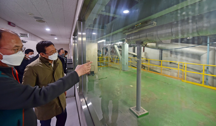 | ▲ 박남춘 시장이 안양시 자원회수시설을 방문, 관계자에게 소각로에 대한 설명을 듣고 있다. (사진제공=인천시청) |