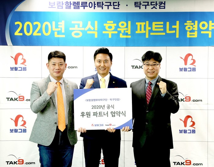 14일 보람상조 본사에서 진행된 보람할렐루야와 탁구닷컴의 후원 협약식에는 이창우 보람할렐루야 단장(현 보람그룹 대표이사), 문의배 탁구닷컴 대표이사(현 전국대학탁구동호인연맹 회장), 오광헌 보람할렐루야 감독 등이 참석했다.