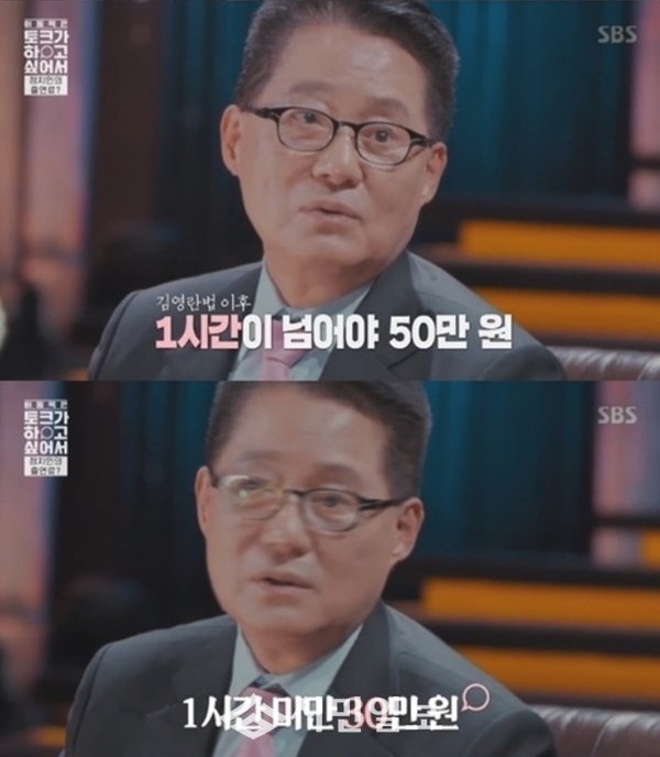 이에 이동욱은 "출연료 얼마 받는지"라고 질문했다. 박 의원은 "김영란법 전에는 한 달에 천만 원 이상 들어왔다. 김영란법 제정 이후에는 녹화 시간이 1시간 넘어야 50만 원이 들어온다. 오늘 이 프로그램은 어떤 경우에도 1시간이 넘게 촬영해야 한다"고 설명했다.