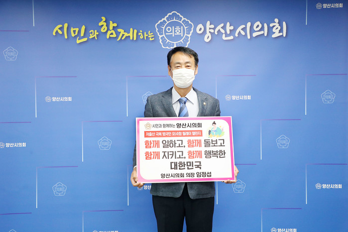 양산시의회 임정섭 의장은‘저출산 극복 범국민 포함 릴레이 챌린지’에 지난 29일 동참했다.