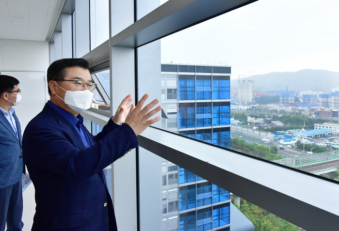 | ▲ 류 구청장이 데시앙플렉스 내부를 살펴보고 있다. |