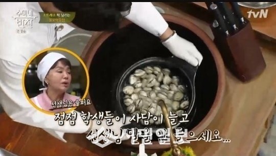 할배 3인방은 처음부터 난관에 봉착했다. 김수미는 해감된 꼬막이라고 설명했지만 임현식은 해감을 위해 소금을 넣었다. 또 김수미가 냄비에 넣어 꼬막을 데치자고 했지만 이를 듣지 않고 꼬막을 소금물 째 냄비에 투하했다. 이를 본 김수미는 “학생들이 사담이 늘고 선생님 말을 안 듣는다”고 핀잔을 줬다.