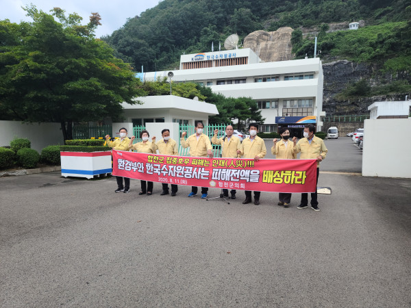 군의회는 합천댐을 실질적으로 관리하는 환경부와 한국수자원공사에 강한 유감을 표시하며 ▲이번 합천댐 물관리 조절 실패로 인한 모든 보상대책을 강구하고 빠른 시일 내에 피해 전액을 배상할 것 ▲이번 재해는 환경부와 한국수자원공사의 댐 물관리 정책결정 실패로 인한 인재이므로 합천군을 특별재난지역으로 선포할 것 ▲합천군의 일방적 희생을 강요하는 '낙동강유역 통합 물관리방안'에 따른 황강취수장 건설계획을 전면 백지화하고 합천군을 위협하는 일체의 행위를 즉각 중단할 것 등을 요구했다.