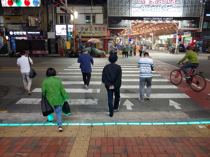 | ▲ 황학동 중앙시장 앞 바닥신호등. (사진제공=중구청) |