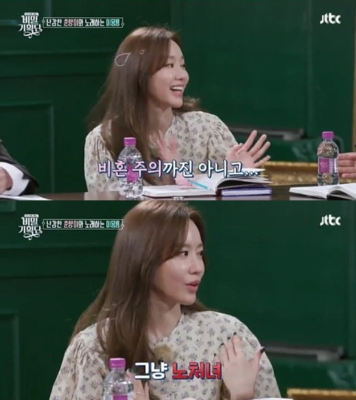 이 말을 들은 유세윤이 김아중에게 "비혼주의자?"라고 하자 김아중은 손사래를 치며 "비혼주의자는 아니다"고 밝혔다. 이어 "그냥 노처녀"라며 "어쩌다 보니 노처녀"라고 덧붙이며 털털한 매력을 발산했다.