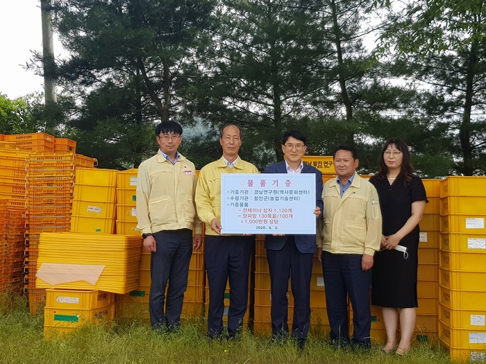 함안군 군북면 소재 경남연구원(원장 홍재우) 역사문화센터는 지난 3일 코로나19로 경제적 어려움을 겪고 있는 관내 농가를 위해 컨테이너 상자 1,120개와 양파망 13,000개(총 1,000만원 상당)를 함안군에 기탁했다.