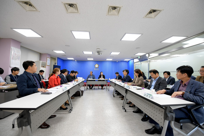 경기 김포시의회가 30일 의회 브리핑룸에서 한강신도시내 교통·환경·기반시설 등 각종 현안사항의 해결방안 모색을 위해 한강신도시총연합회와 간담회를 했다. 이날 간담회에는 신명순 의장을 비롯해 지역구 의원, 시 관계 부서 공무원이 참석해 다양한 주민 건의사항을 청취하고 관련 대책을 논의했다. (사진제공=김포시의회)