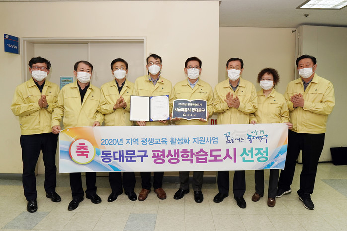| ▲ 동대문구는 지난해 11월 평생학습도시로 선정됐다. 사진은 유덕열 구청장(오른쪽 네번째)이 관계자들과 기념촬영을 하고 있는 모습. (사진제공=동대문구청) |