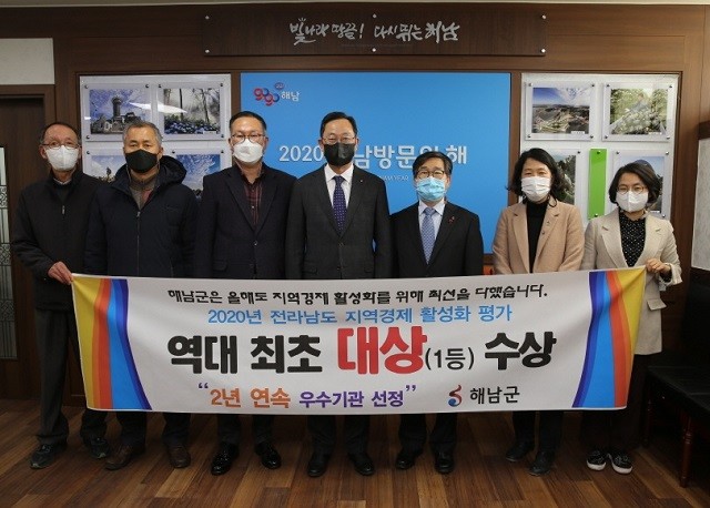 [해남=정찬남 기자] 전남 해남군이 전라남도에서 실시한 2020년 지역경제 활성화 평가결과‘대상’을 수상했다.
