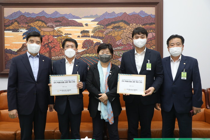 이날 조석환 의장을 비롯해 김기준 용인시의회 의장, 이길용 고양시의회 의장은 서울 여의도 국회에서 서영교 행정안전위원장과 이해식 의원을 면담하고 건의문을 전달했다.