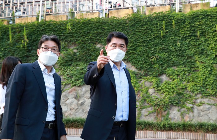 | ▲ 박 구청장이 별빛내린천 특화사업 현장을 확인하고 있다.(사진제공=관악구청) |