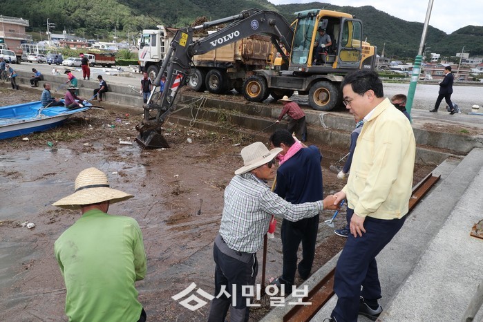 [창원=안기한 기자] 제18호 태풍 ‘미탁’이 지난 2일 밤 창원시를 관통하면서 폭우와 강풍의 흔적만을 남기고 사라졌다.허성무 창원시장은 지난 2일 밤부터 3일 사이 집중호우를 동반한 제18호 태풍 ‘미탁’으로 피해를 입은 북면 신리저수지 배수로 제방 피해지역과 월영동 해안도로 침수지역 등을 3일 긴급 점검했다고 밝혔다.
