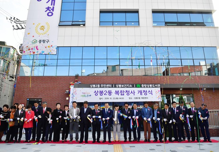 [시민일보 = 여영준 기자] 서울 중랑구(구청장 류경기)가 최근 류경기 구청장을 비롯한 내빈, 지역주민 등 200여명이 참석한 가운데 ‘상봉2동 신축 복합청사 개청식’을 개최했다.