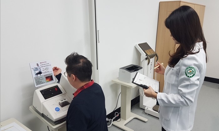 | ▲ 상봉보건지소를 찾은 주민이 만성질환관리 검진을 받고 있다. |