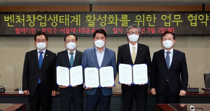 [시민일보 = 여영준 기자] 관악구(구청장 박준희)는 3일 오후 2시, 서울대학교, KB금융지주와 구청 5층 기획상황실에서 ‘벤처·창업생태계 활성화를 위한 업무협약’을 체결했다고 밝혔다.