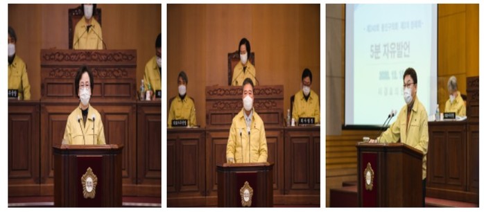 아울러 구의회는 지난 17일 열린 제2차 본회의에서 집행부에 대한 구정질문을 통해 구정발전을 위한 다양한 의견을 제시했고, 18일 제3차 본회의에서 이에 대한 답변을 청취하는 시간을 보냈다.
