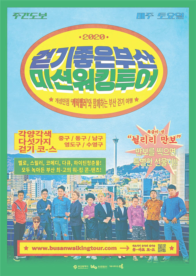 부산시(시장 권한대행 변성완)가 부산관광공사와 함께 사람중심 보행정책에 맞춰 부산 도심 속 도보 테마 관광 프로그램인 ‘2020년 걷기좋은부산, 미션 워킹투어’를 운영한다.