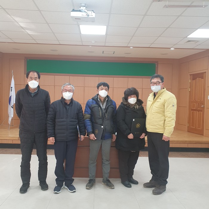 코로나19 확산으로 강화된 방역지침에 따라 실내 거리두기 준수 및 마스크를 착용하고 죽남 임정희씨, 단산 김준씨, 괴곡 백태현씨 3명의 신임이장만 참석한 가운데 면사무소 회의실에서 임명장을 전달했으며, 2021년 재임명 된 이장은 별도 수여식 없이 임명장과 복무지침을 개별 전달했다.