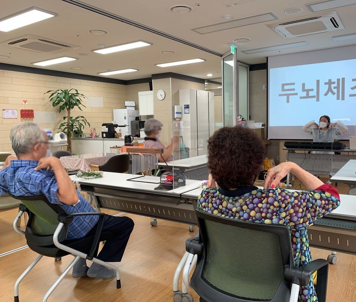 | ▲ 치매안심센터에서 노인들이 두뇌체조 수업을 받고 있다. (사진제공=인천 계양구청) |