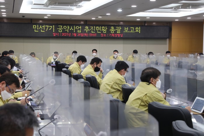 | ▲ 민선7기 공약사업 추진현황 총괄 보고회 진행 모습. (사진제공=관악구청) |