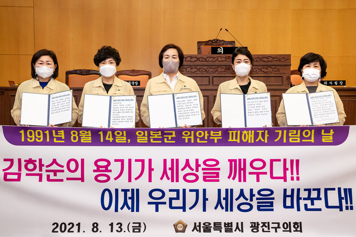 [시민일보 = 여영준 기자] 서울 광진구의회(의장 박삼례)는 최근 의원들이 ‘일본군 위안부 피해자 기림의 날’을 기념해 브리핑실에서 성명서를 발표했다고 18일 밝혔다.
