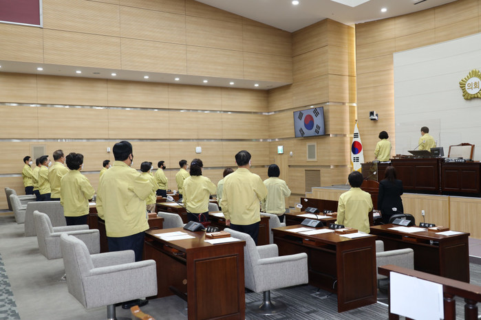 김정재 의장은 개회사를 통해 "이번 제264회 임시회는 코로나19 장기화라는 어려운 시국에 열리는 만큼 더욱 심도 있는 논의를 통해 구민의 입장에서 면밀하게 검토해 심사해 주시기 바란다"고 당부했다.