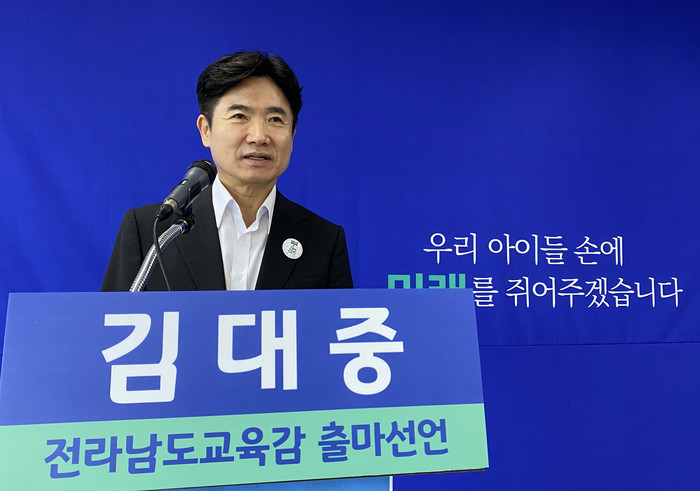 김대중 대표는 8일 전남 무안군 남악에 마련한 자신의 선거준비사무소에서 출마 기자회견을 갖고 전남교육감 출마를 공식 선언했다.