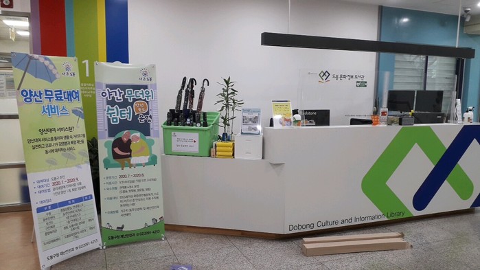 | ▲ 도봉문화정보도서관에 설치된 양산 대여소.(사진제공=도봉구청) |