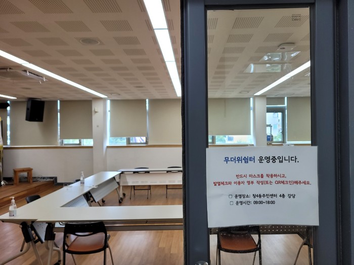| ▲ 창4동 주민센터 강당에 설치된 도봉구 무더위쉼터.(사진제공=도봉구청) |