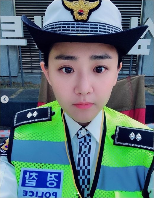 공개된 사진 속 문근영은 경찰 복장으로 거수경례를 하며 동안 미모를 선보였다.