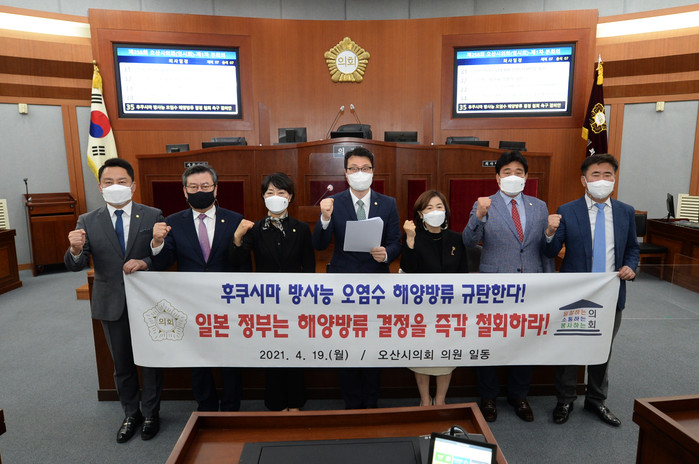 [오산=김정수 기자] 경기 오산시의회가 19일 제258회 임시회 제1차 본회의를 열어 '후쿠시마 방사능 오염수 해양방류 결정 철회 촉구 결의안'을 만장일치로 채택했다.