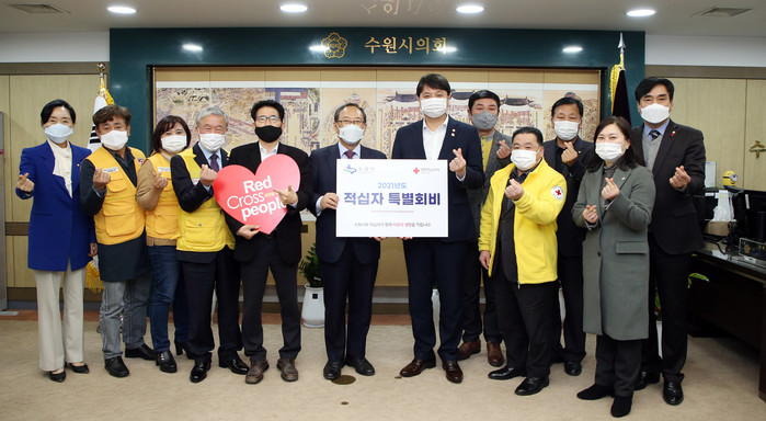 [수원=임종인 기자] 경기 수원시의회가 1일 의장실에서 대한적십자사 경기도지사에 2021년도 적십자 특별회비 100만원을 전달했다.