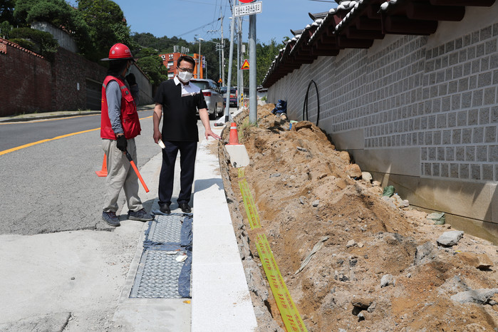 27일 구의회에 따르면 김 의원은 먼저 사직로 73에서 인왕산로 19까지 폭 2~3m, 연장 400m(좌측 보도정비, 우측 보도신설)로 진행되고 있는 공사현장을 방문해 공사 진행 상황을 점검하고 공사로 인한 주민불편을 최소화하도록 당부했다.