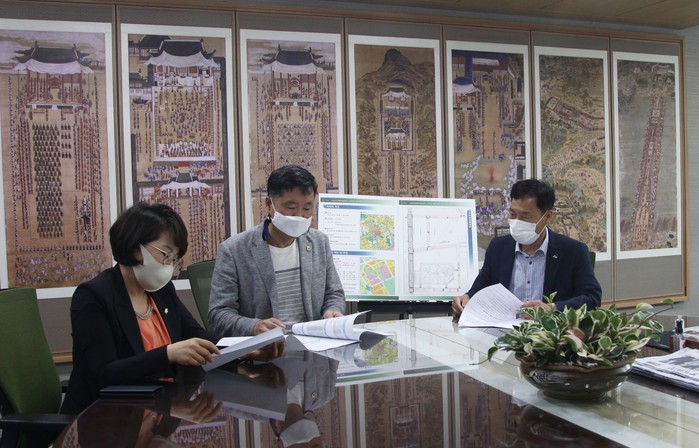 | ▲ 김미경 수원시의원(왼쪽)이 관계공무원들과 의견을 나누고 있다. (사진제공=수원시의회) |