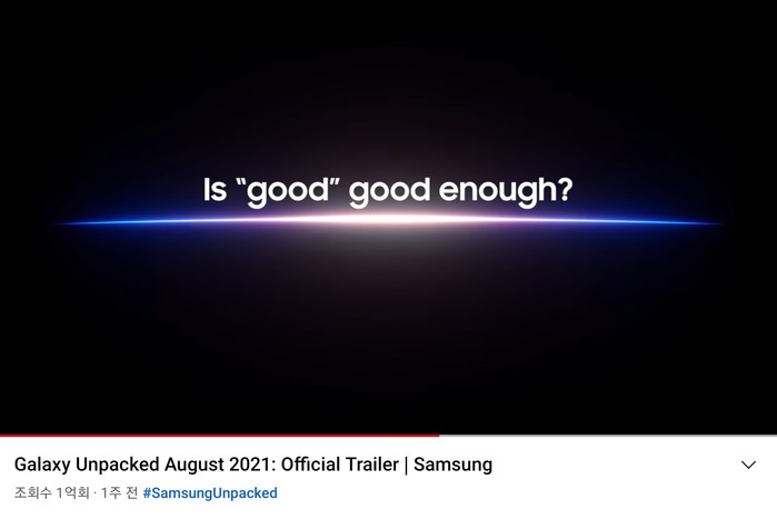 [시민일보 = 여영준 기자] 삼성전자가 오는 11일 '삼성 갤럭시 언팩' 행사를 앞두고 지난 7월 28일 공개한 공식 트레일러 영상이 유튜브에서 조회수 1억 뷰를 돌파했다.