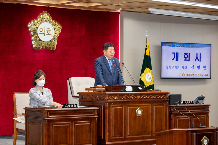 8일 정례회 첫 날 김병진 의장은 개회사를 통해 "어느덧 반환점에 다다른 제8대 강서구의회는 역대 의회와 비교해 의원발의 조례안의 제정 및 개정 건수가 두 배 이상 증가하는 등 자치입법기관으로서 역할을 충실히 수행해 왔다"라고 밝혔다.