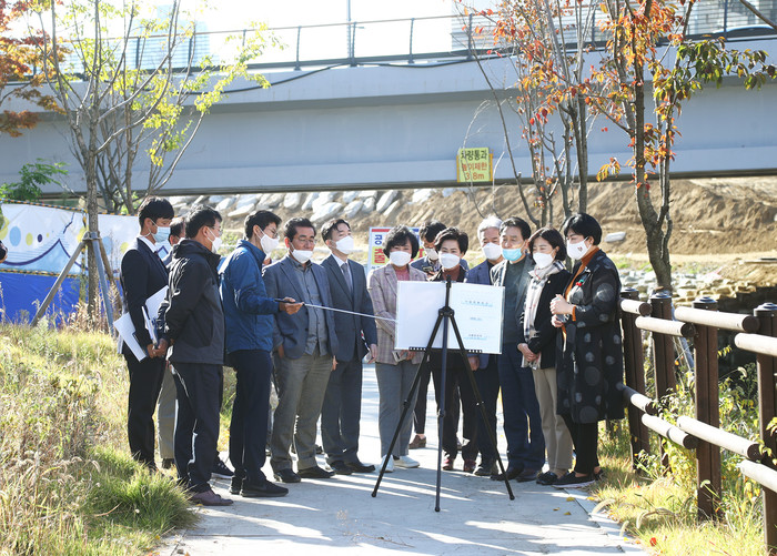 이어, 경기 성남시가 위례지구 남쪽에 조성한 창곡천 수변공원 현장에서 비교견학을 실시했다. 위원들은 “창곡천 저류지 수질오염 실태 및 환경개선 사례를 지속적으로 모니터링해 줄 것”을 당부했다.